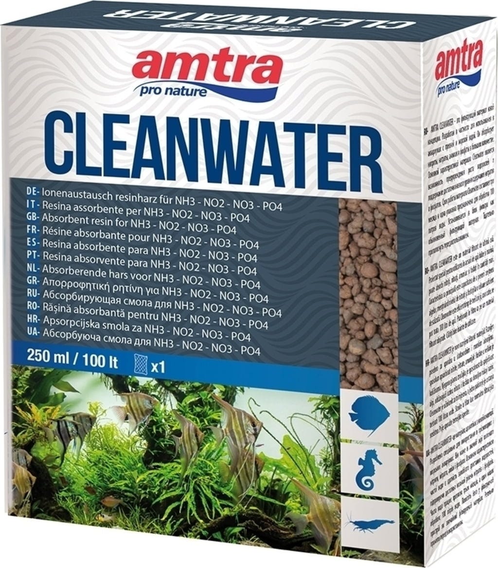 Amtra Cleanwater to żywica jonowymienna, która wiąże związki azotu w akwarium słodkowodnym lub morskim i tym samym skutecznie pozbawia glony podstawowej substancji odżywczej.