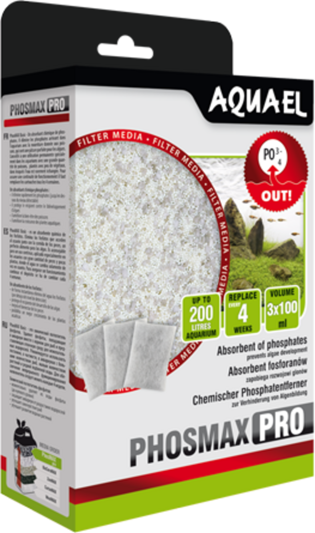 Wkłady gąbkowe PHOSMAX Pro do filtrów AQUAEL wykonane są ze starannie wyselekcjonowanej gąbki nasyconej fosforanami. Wkład skutecznie pochłania fosforany z wody. Jest przy tym całkowicie bezpieczny dla ryb i bezkręgowców akwariowych oraz roślin.