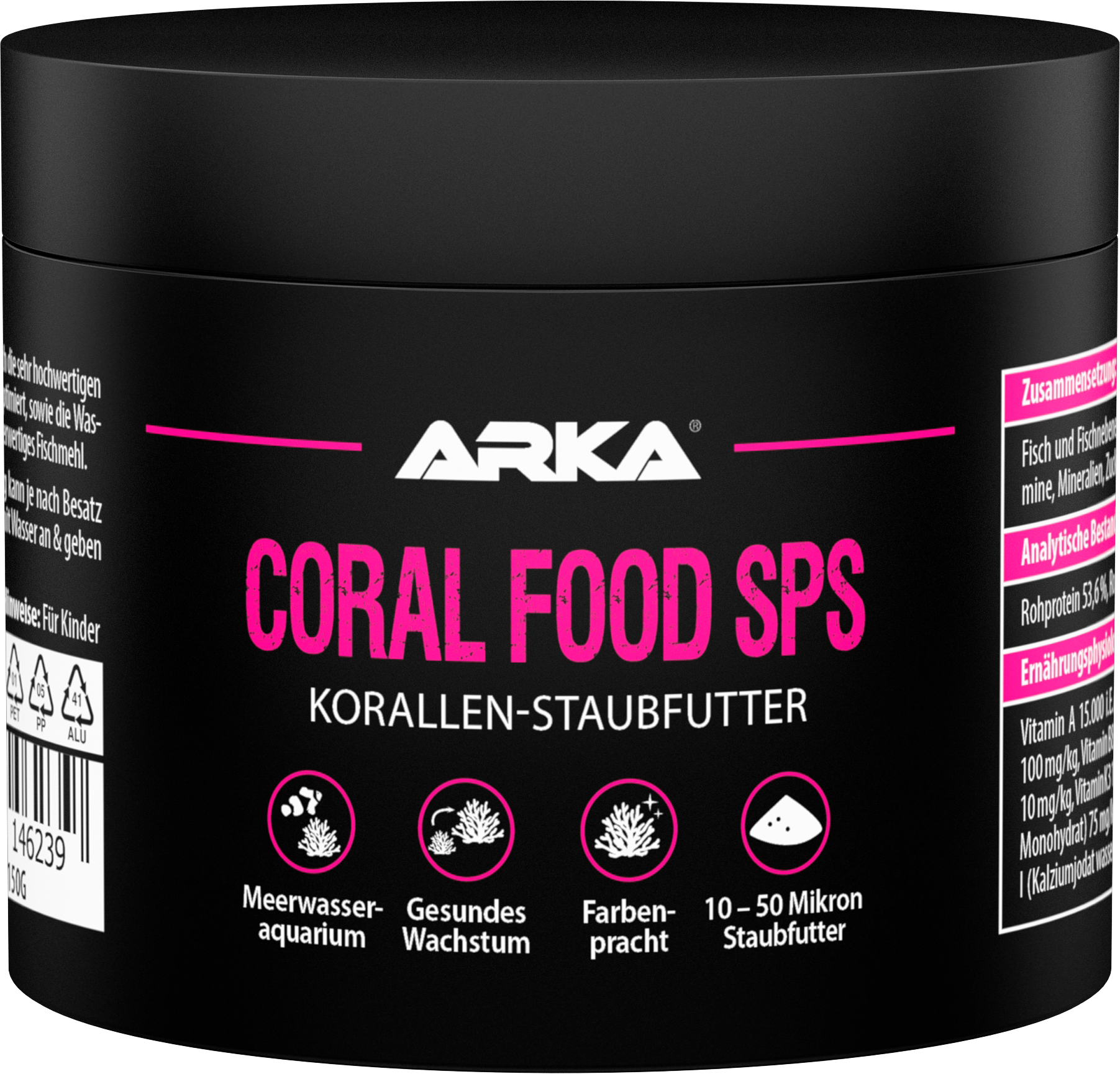 Coral Food SPS to tłoczony na zimno pokarm w proszku dla optymalnego odżywiania koralowców z małymi polipami. Dzięki bardzo wysokiej jakości i specjalnie dobranym składnikom optymalizuje się naturalne wybarwienie i wzrost, a zanieczyszczenie wody jest ograniczone do minimum.