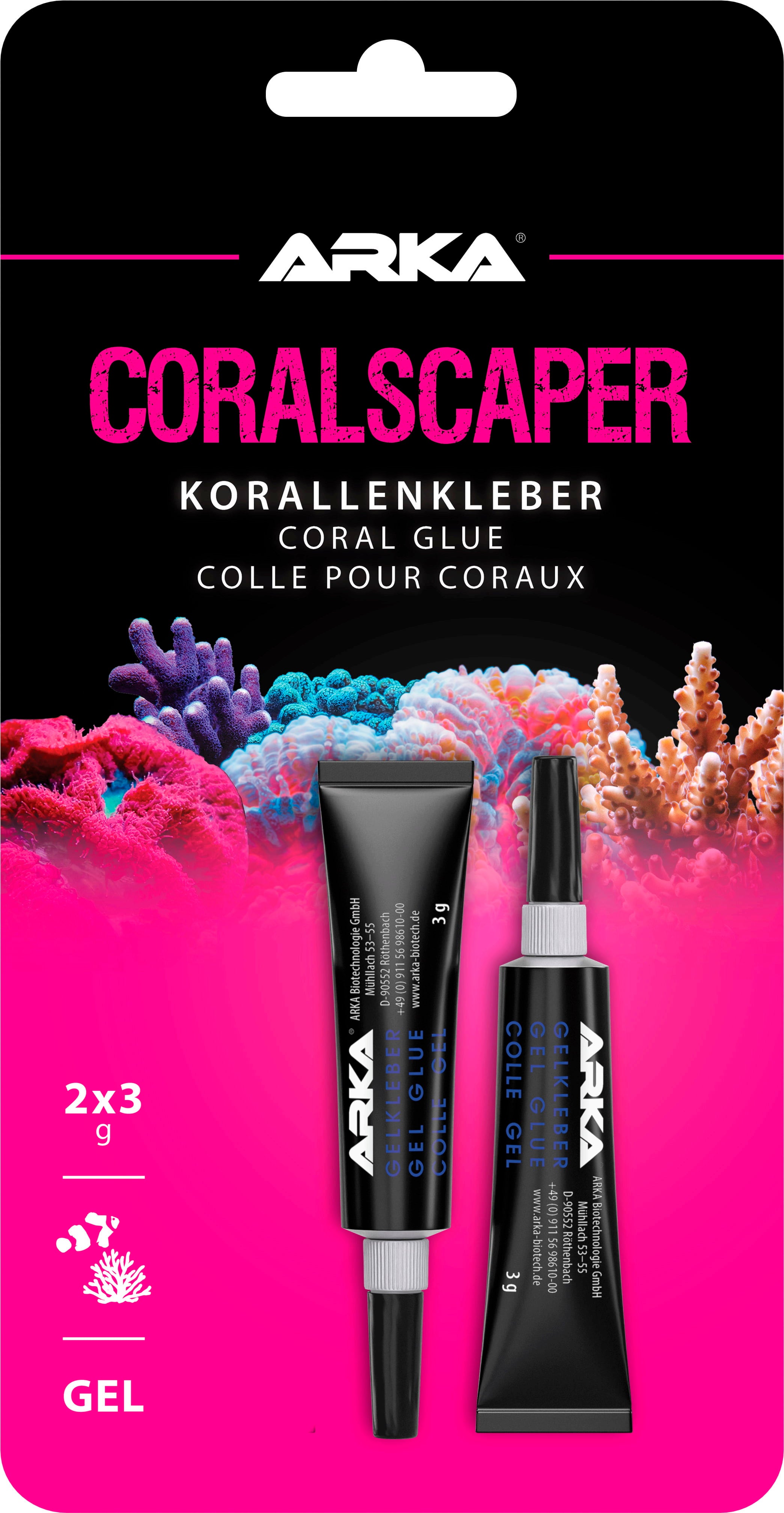 Coralscaper ułatwia klejenie koralowców. Klej ten ma wysoką siłę klejenia i jest łatwy w użyciu. Nie uwalnia żadnych pozostałości do wody w akwarium. Po nałożeniu klej należy natychmiast zanurzyć w wodzie akwariowej, aby wspomóc tworzenie się biofilmu. Oznacza to, że nie kapie i można nakładać kilka warstw.