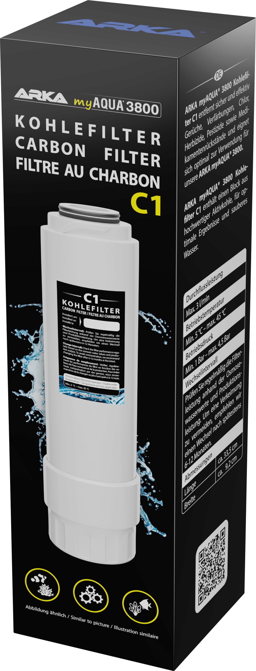 ARKA myAQUA® 3800 FILTR WĘGLOWY C1 to jeden z czterech filtrów zamiennych do systemu odwróconej osmozy myAqua 3800® firmy ARKA. Blok wysokiej jakości węgla aktywnego zapewnia czystą wodę.