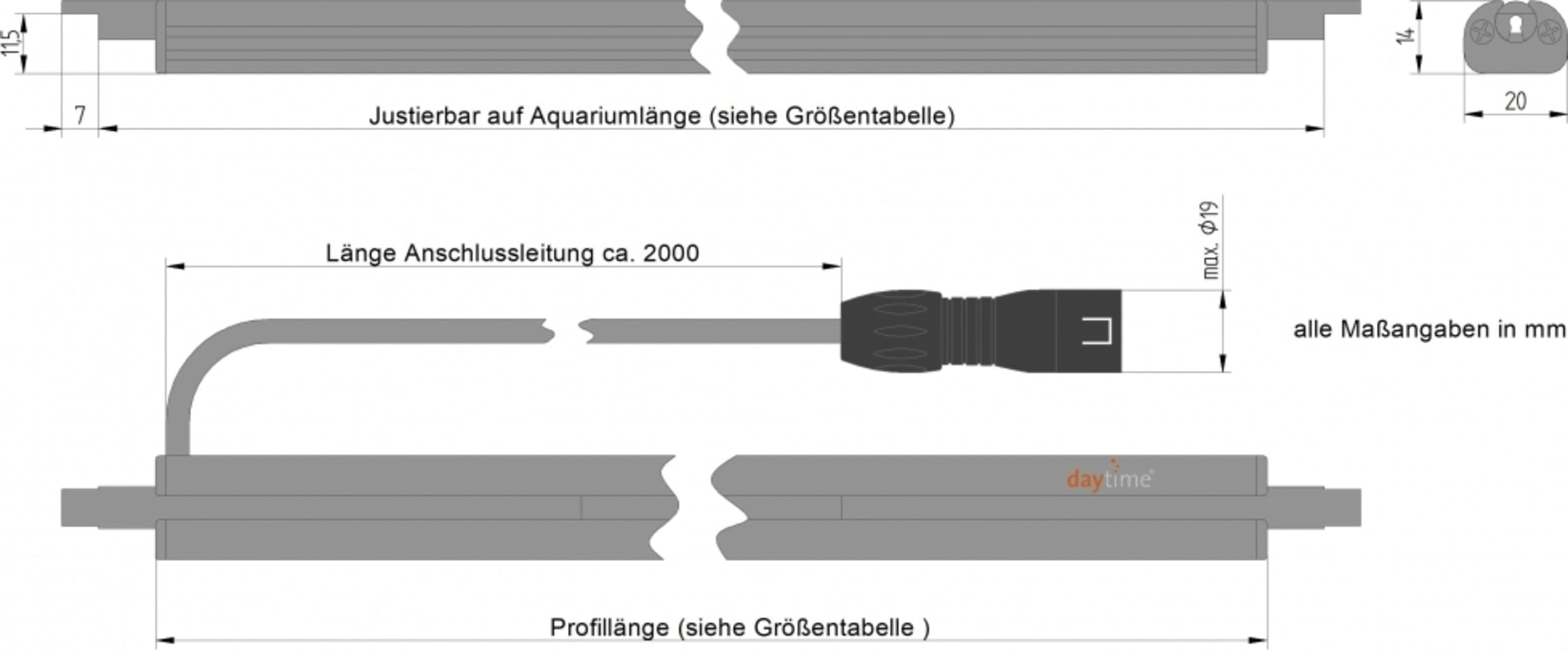 Eleganckie oprawy oświetleniowe mają wbudowany system adapterów z wbudowanymi teleskopowymi wspornikami wykonanymi z wytrzymałego aluminium, co pozwala na bezstopniowe dopasowanie opraw do wszystkich pokryw akwariowych, a także otwartych zbiorników. Wysuwane szyny teleskopowe są antypoślizgowe i mają gwint maszynowy, który umożliwia instalację opcjonalnych zestawów adapterów.