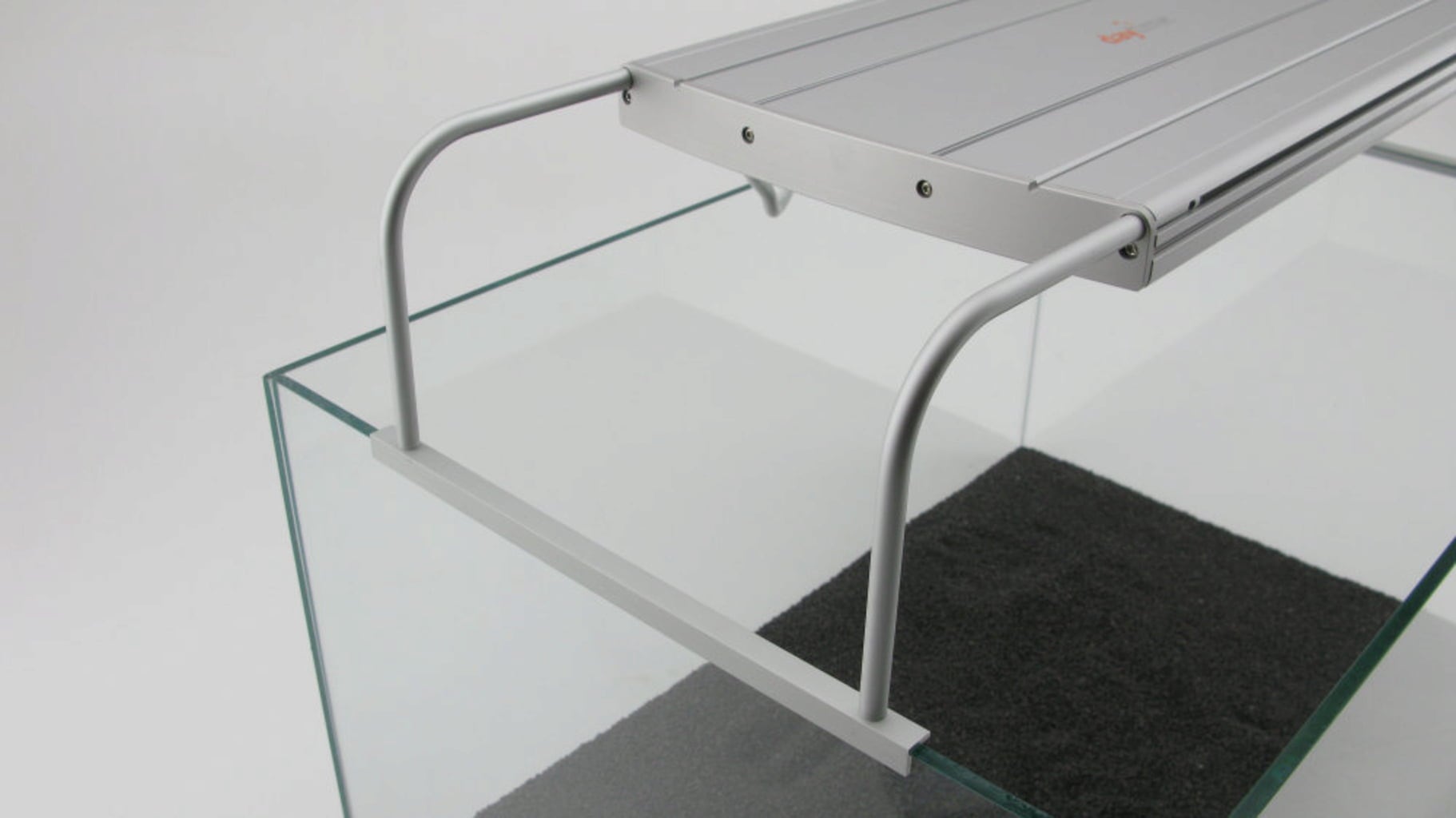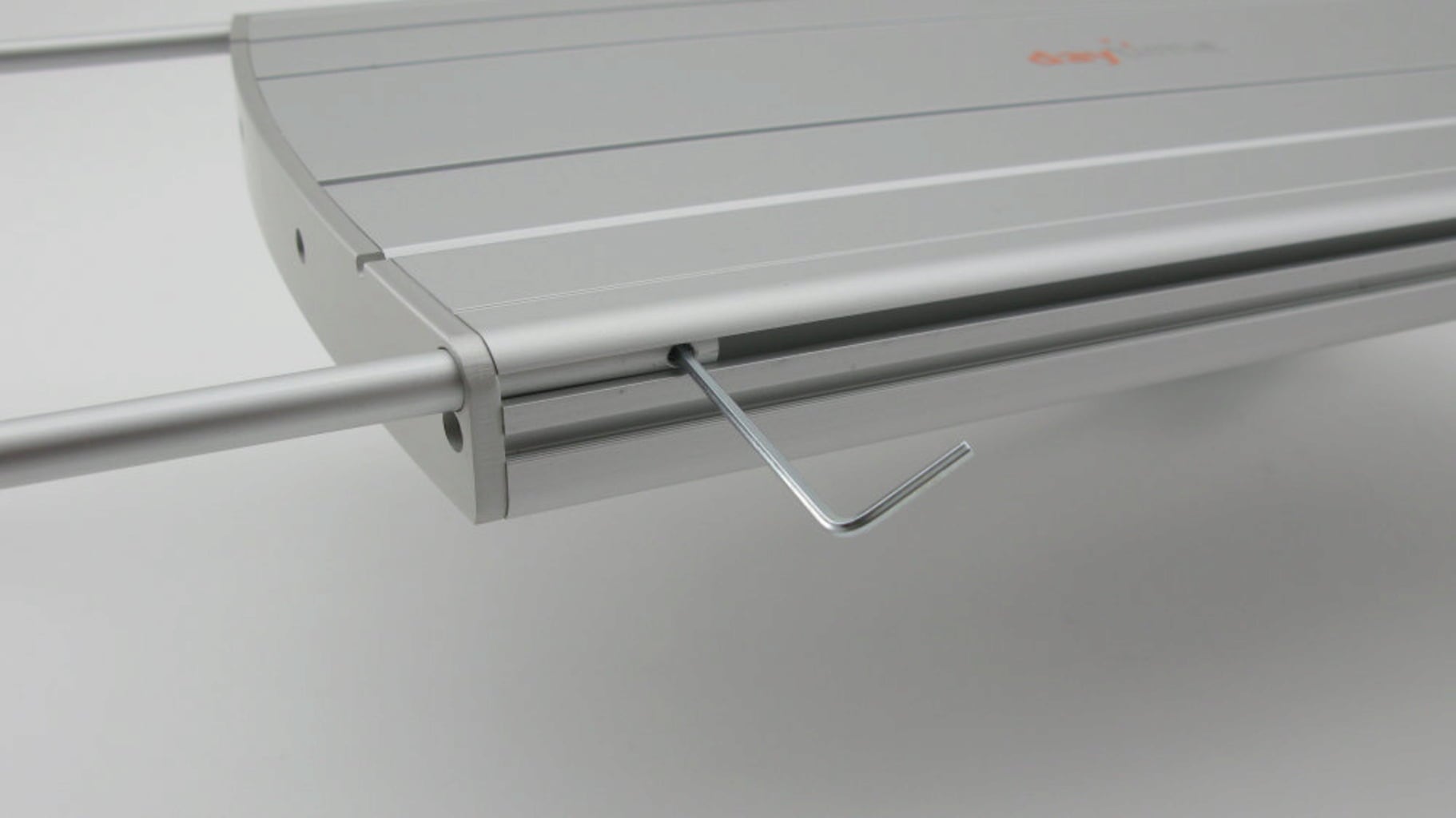 Profil lamp pendix posiada okrągłe kanały, w które idealnie wpasowują się długie końce adaptera mocującego. Mimo że szerokość wspornika gwarantuje już idealne dopasowanie do rozmiaru akwarium, adapter jest wykonany w taki sposób, że między spodnią stroną pendixa a akwarium pozostaje ok. 10 cm odstępu. Śruby blokujące ze stali nierdzewnej ustalają żądaną pozycję (odpowiedni klucz imbusowy wchodzi w zakres dostawy).