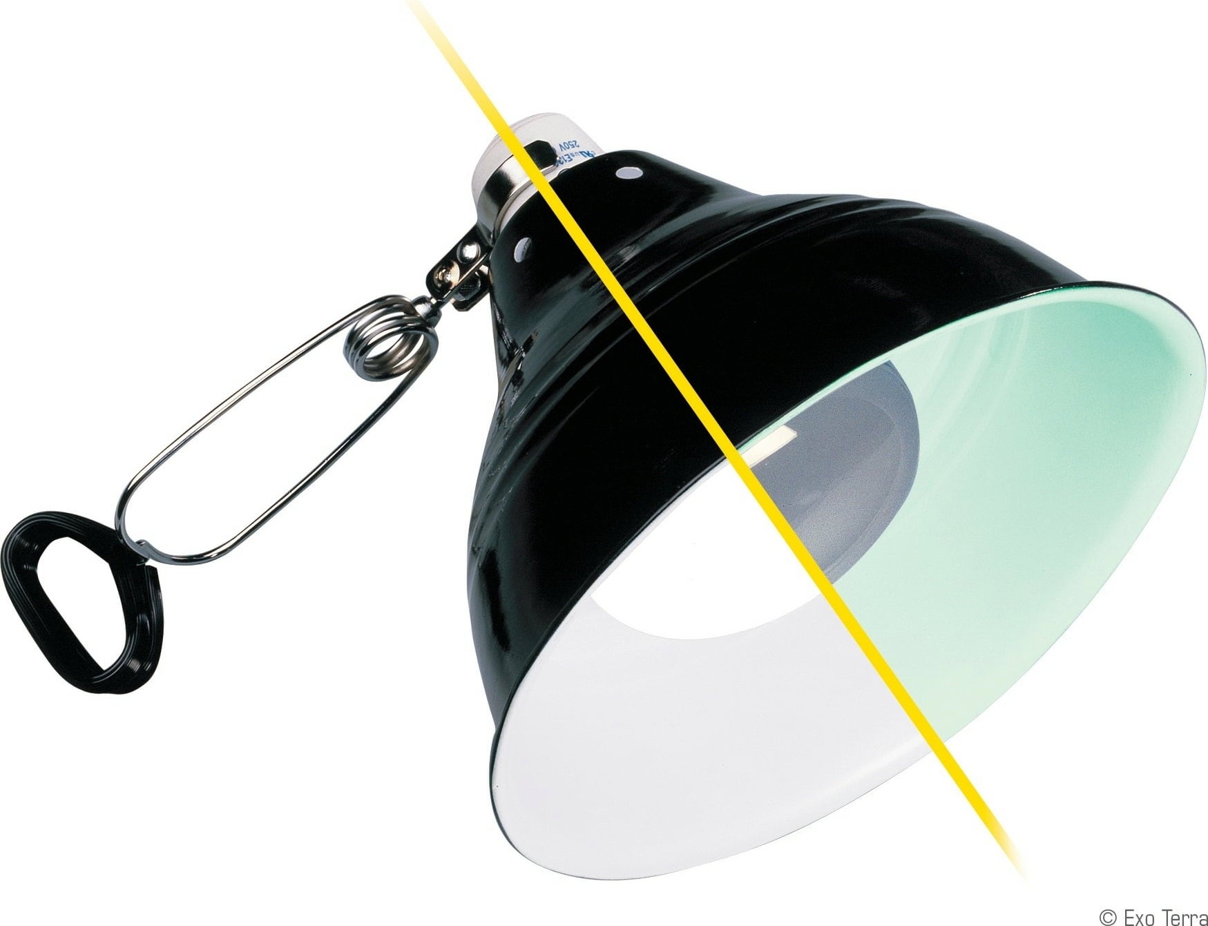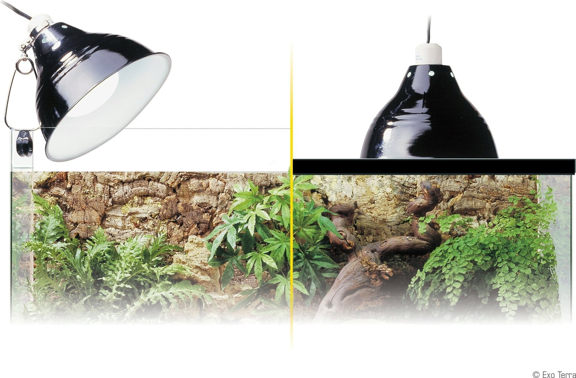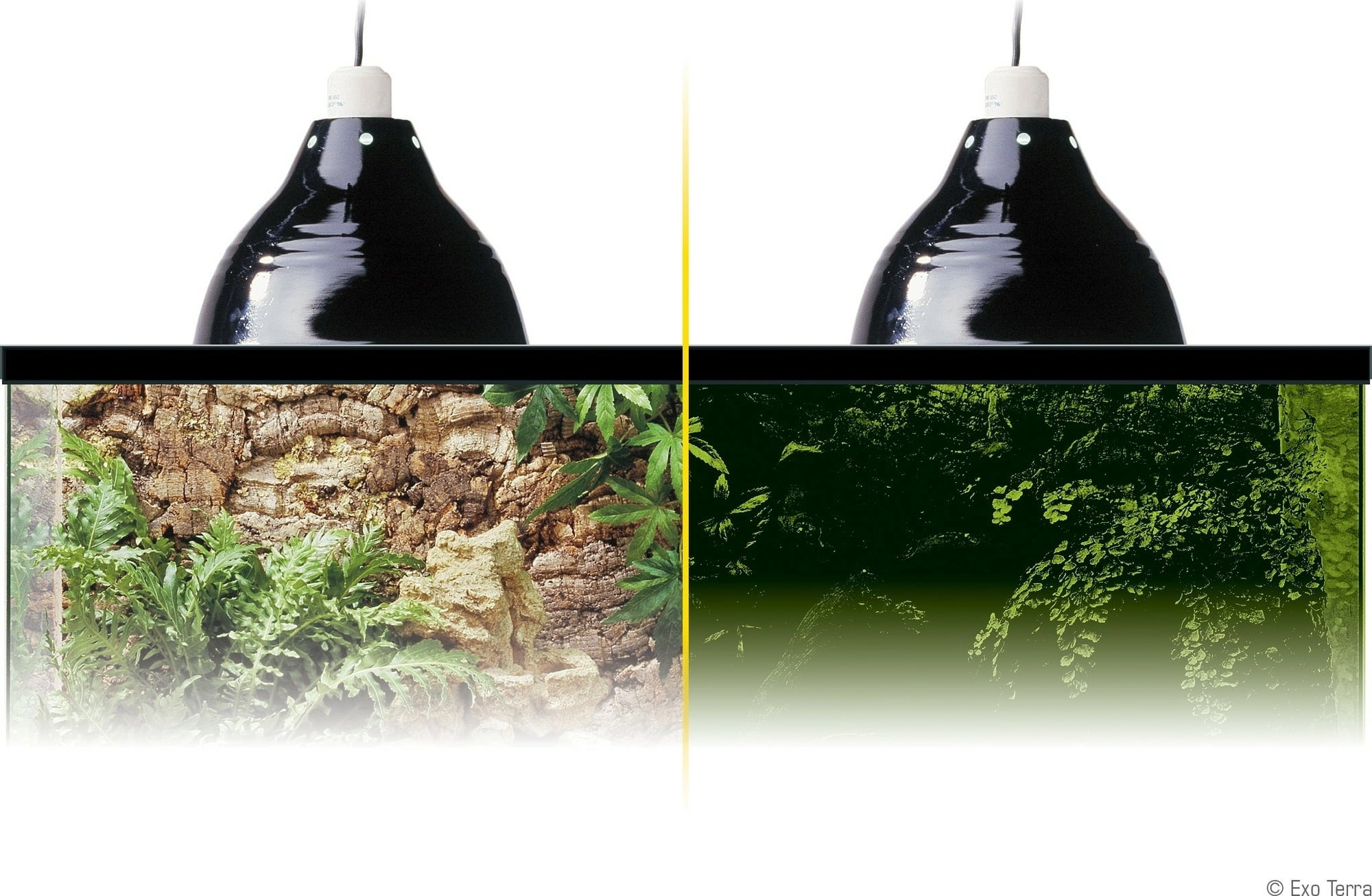 Dzięki Exo Terra Glow Light Porcelain możesz skierować ciepło i światło tam, gdzie jest to najbardziej potrzebne w terrarium! Solidna lampka składa się z metalowego odbłyśnika, żaroodpornej porcelanowej oprawki i sprężynowego zacisku obrotowego. Wnętrze reflektora pokryte jest świecącą powłoką: Nawet po wyłączeniu lampka nadal emituje światło do otoczenia. Oznacza to, że wytwarzane promienie świetlne nie są tracone, a energia świetlna jest trwale i skutecznie przechowywana na noc lub ciemność. Gdy Glow Light jest wyłączony, zwierzęta dzienne mogą odpoczywać w nocy bez stresu dzięki silnemu odbiciu. Wyłączone, ale odblaskowe i przypominające księżyc światło jest szczególnie odpowiednie dla zwierząt nocnych, które mogą teraz patrzeć w dal w ciemności bez żadnych problemów. Jeśli chcesz obserwować swoje zwierzęta w nocy, nie musisz już włączać światła dzięki Glow Light: Mogłoby to potencjalnie wytrącić je ze snu i spowodować niepotrzebny stres.