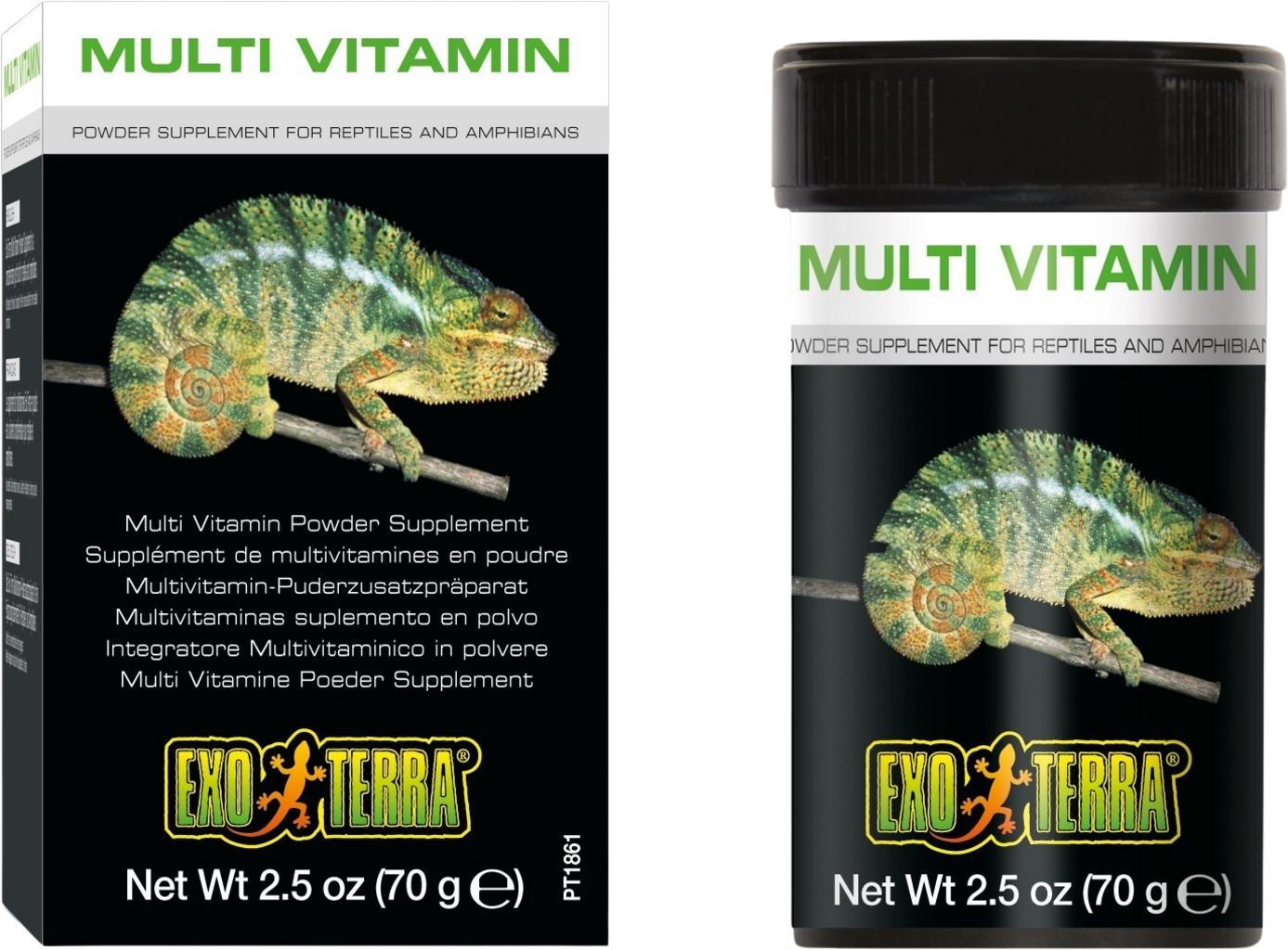 Exo Terra Multivitamin to pokarm uzupełniający w postaci proszku, który jest optymalnie dostosowany do wymagań żywieniowych gadów i płazów. Zapewnia im niezbędne dzienne zapotrzebowanie na witaminy, aminokwasy i pierwiastki śladowe, a tym samym zapewnia wystarczającą ilość energii.