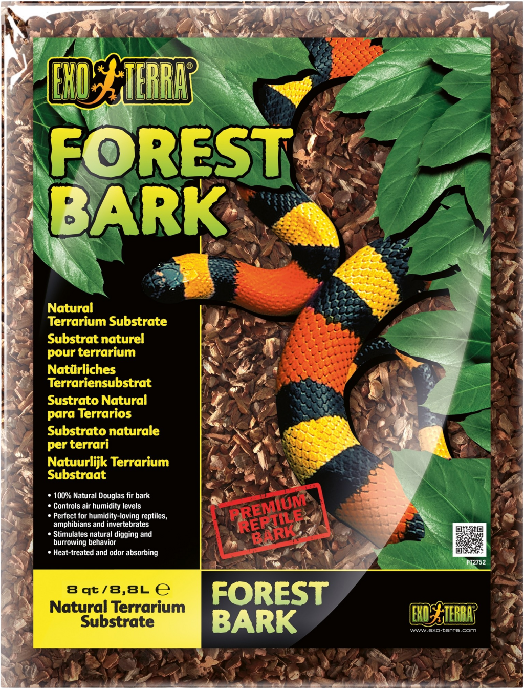 Biodegradowalne podłoże Exo Terra Terrarium Substrate Forest Bark to naturalne i produkowane w sposób zrównoważony podłoże do terrarium wykonane z kory daglezji. Podczas procesu produkcyjnego kora jodły jest wrzucana do bębna, poszczególne kawałki kory są wygładzane i usuwa się z nich pył. Następnie przetworzone podłoże poddaje się obróbce cieplnej i usuwa się ewentualne bakterie.
