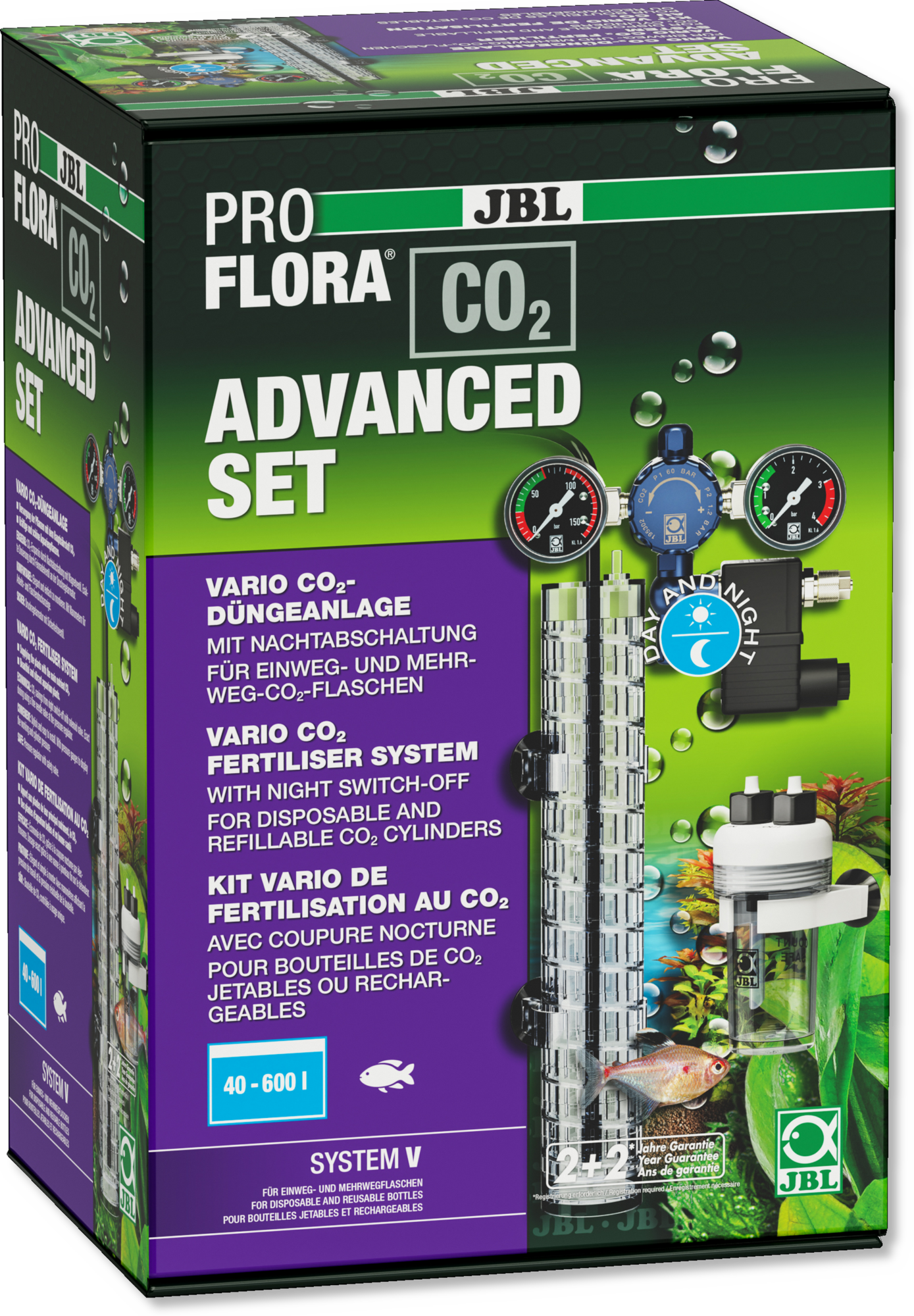 Zestaw CO₂ Advancet zawiera system nawożenia roślin CO₂, który dostarcza CO₂ roślinom w akwariach słodkowodnych o pojemności od 40 do 600 l. System nawożenia jest wyposażony w praktyczny pośredni zawór elektromagnetyczny do wyłączania na noc. Dzięki dołączonym stałym testom CO₂ i pH można w dowolnym momencie sprawdzić stężenie CO₂ w wodzie i dostosować je w razie potrzeby.