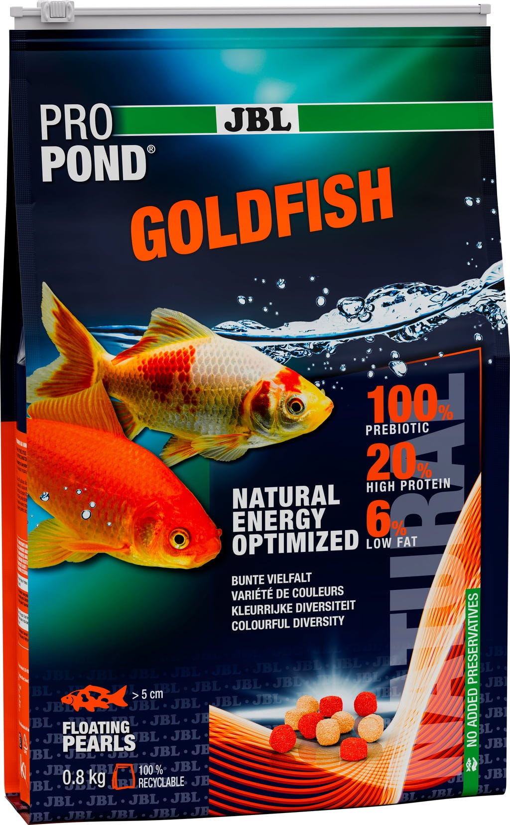 ProPond Goldfish od JBL to kompletny pokarm pływający, który jest idealny dla złotych rybek i innych ryb stawowych i może być podawany przez cały rok. Zawiera pszenicę, łososia, krewetki i szpinak i może wspomagać wybarwienie złotych rybek!