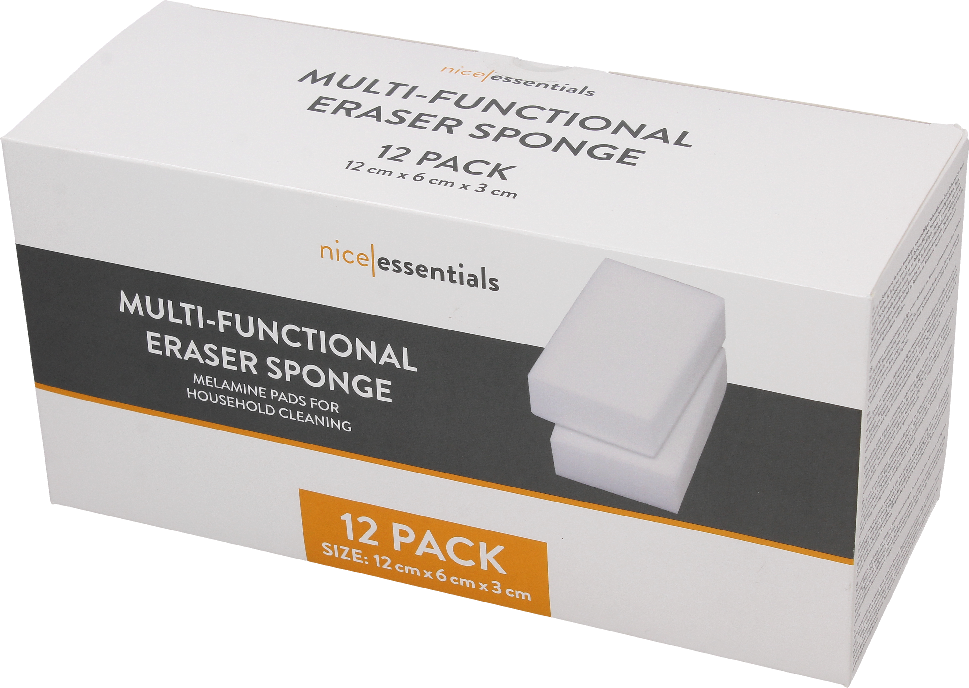 W skład przesyłki wchodzi 12 gąbek czyszczących z melaminy (12 x 6 x 3 cm).