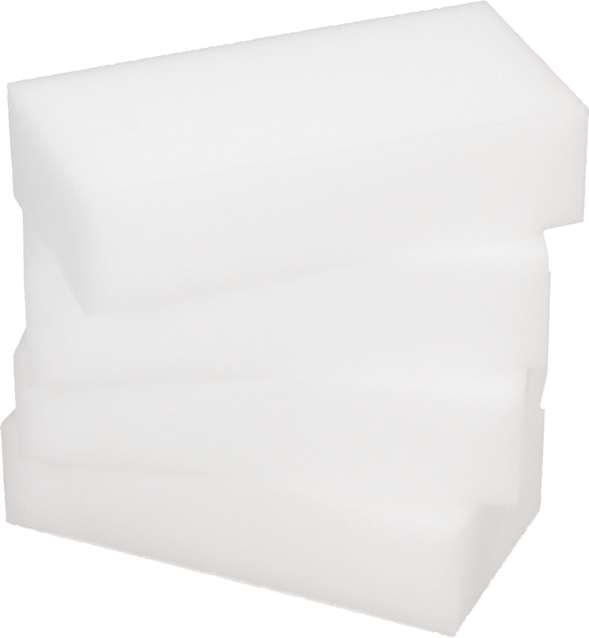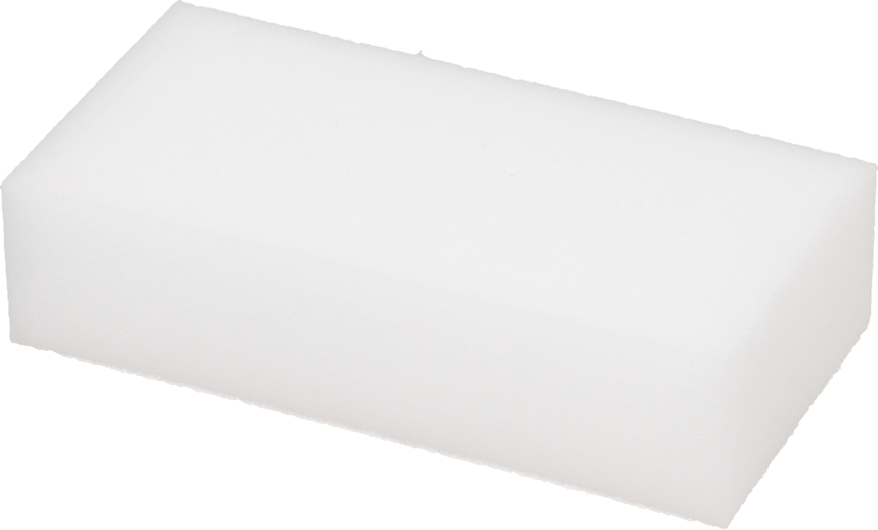 Gąbka działa jak gumka: powoli się zużywa podczas użytkowania i nie pozostawia rys – nawet na delikatnych powierzchniach, takich jak białe ściany, meble czy buty. Można ją łatwo przyciąć do rozmiaru w przypadku opornych narożników, szczelin lub trudno dostępnych miejsc.