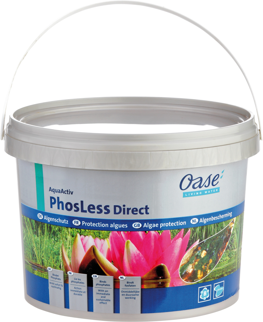 Nadmiar fosforanów przyspiesza wzrost glonów. PhosLess Direct, Oase zapewnia ochronę przed glonami, która wiąże sprawcę z natychmiastowym efektem, a tym samym skutecznie spowalnia niepożądany wzrost glonów. Środek wiąże również siarkowodór – przyczynę nieprzyjemnych zapachów.