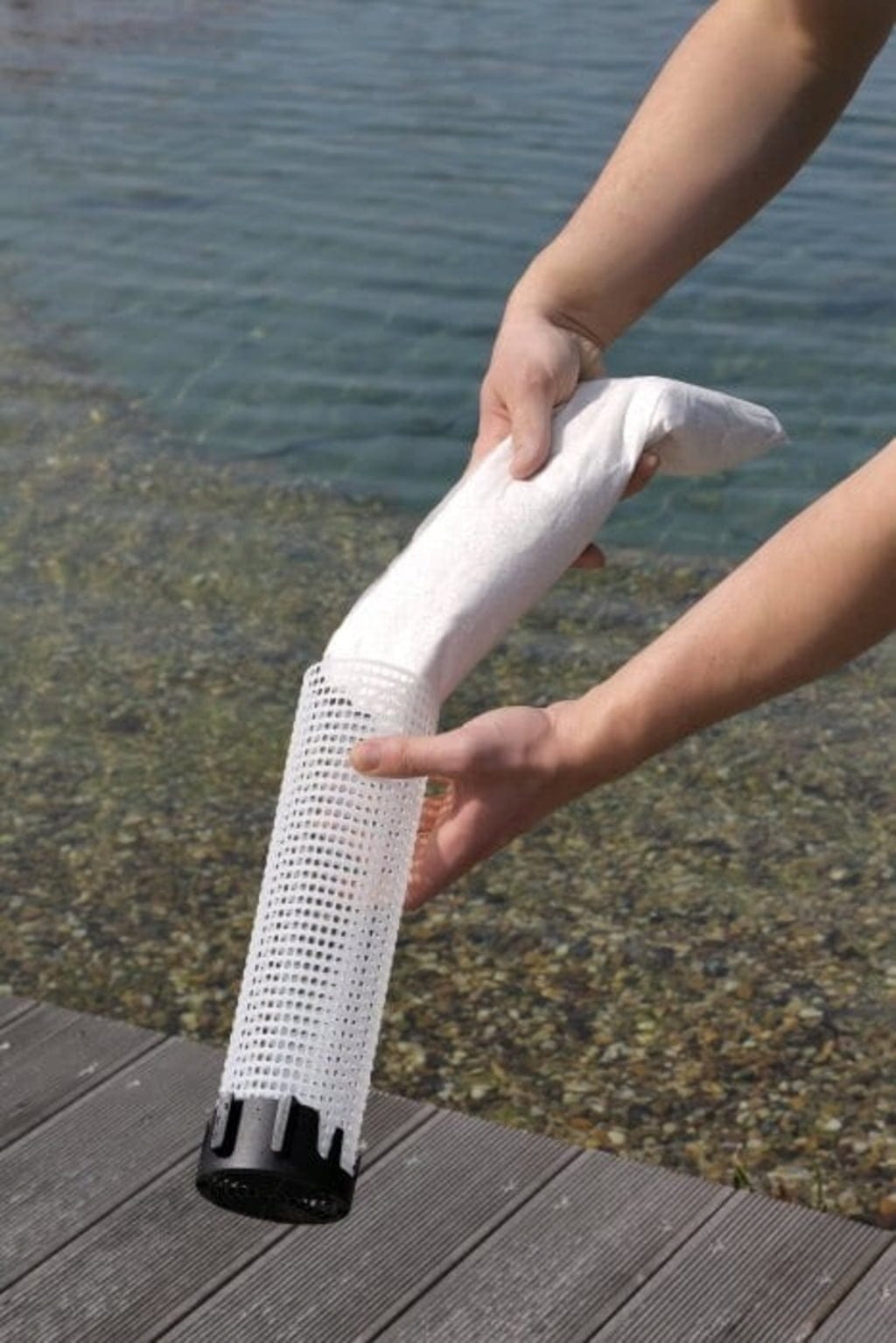 Jedno z opakowań kombinacji wiąże 50 g fosforanów, które w przeciwnym razie stanowiłyby pożywkę dla 2 kg suchej masy glonów! Dzięki innowacyjnemu systemowi wymiany są one usuwane ze stawu w sposób zrównoważony, bez ponownego rozpuszczania!