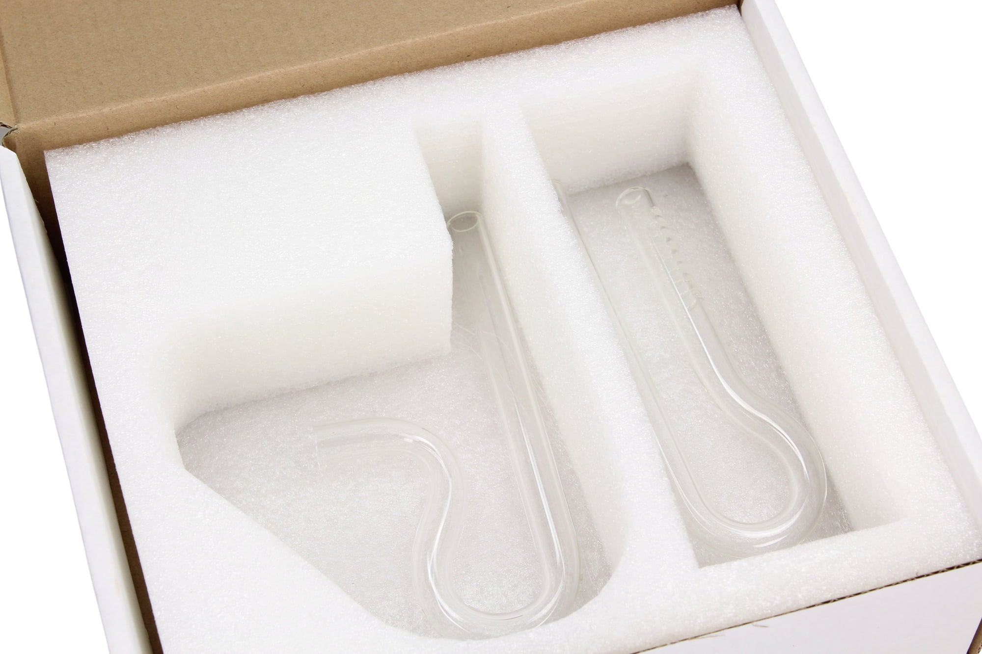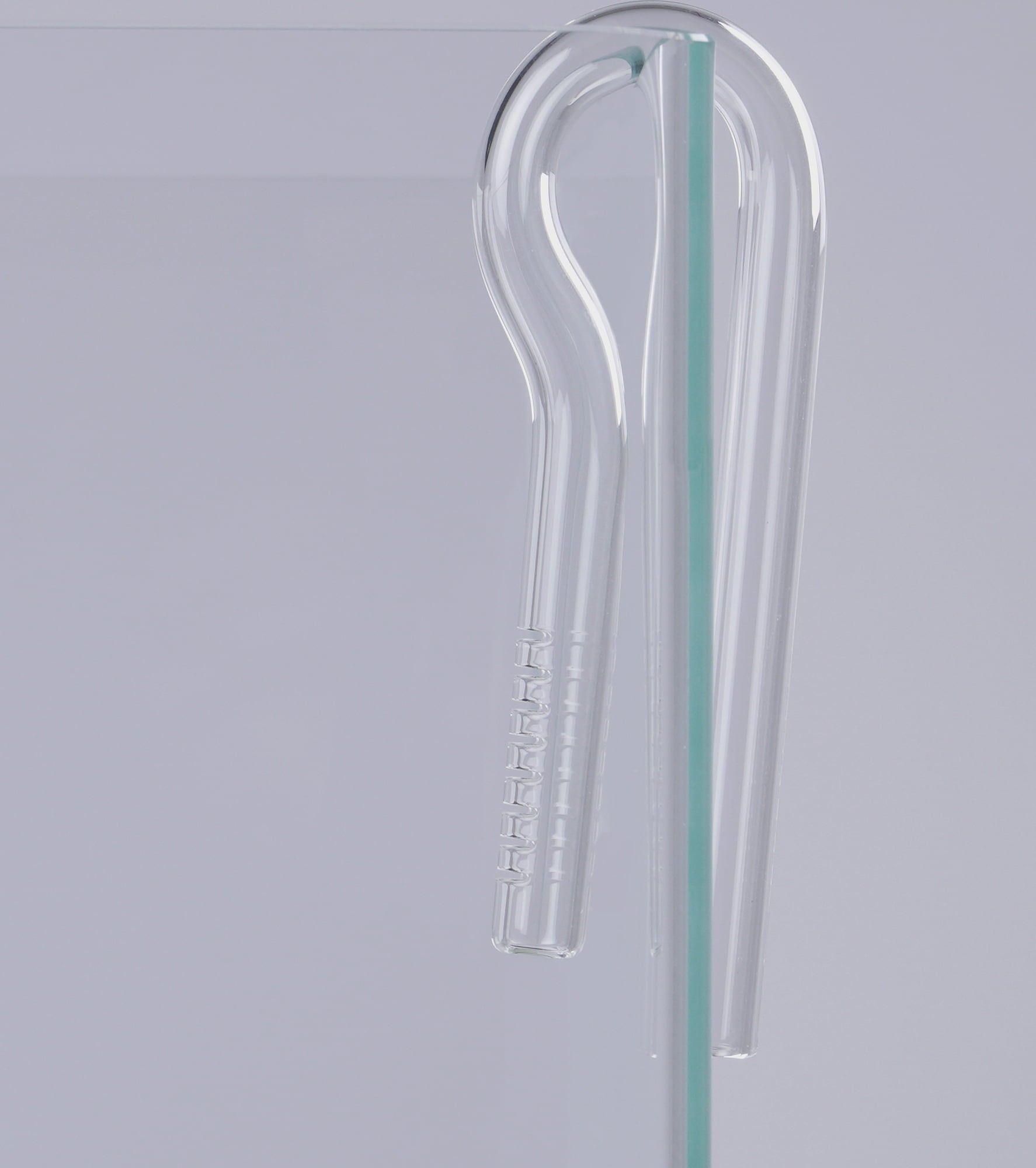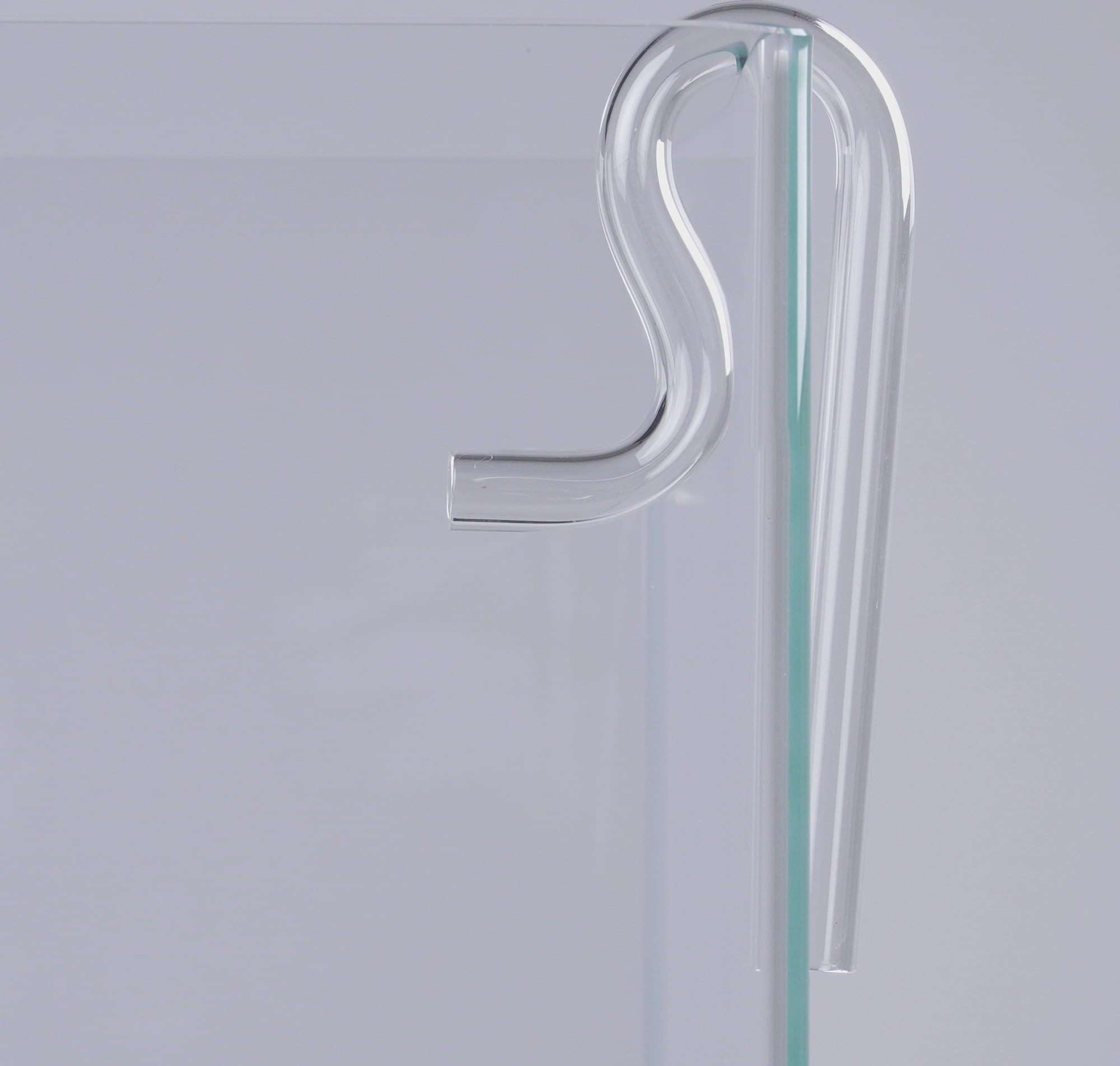 Zestaw wlotowo-wylotowy R+S wykonany jest z wysokiej jakości szkła i jest zawieszony nad oknem bez przyssawek. Woda wypływa z wylotu pod kątem około 90 stopni, zapewniając stały przepływ.
