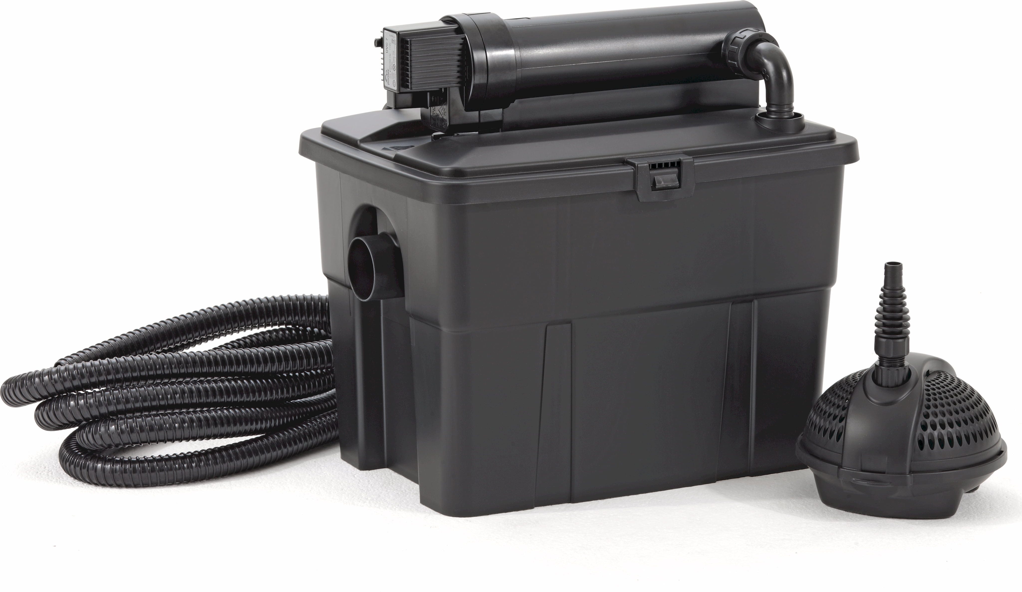 Podczas gdy w modelach 5000, 8000 i 15000 technologia UVC jest jeszcze kompaktowo zintegrowana w filtrze, w zestawach 20000 i 25000 otrzymujesz system modułowy z osobnym, zewnętrznym urządzeniem wstępnego oczyszczania UVC PondoTronic dla maksymalnej wydajności klarowania.
