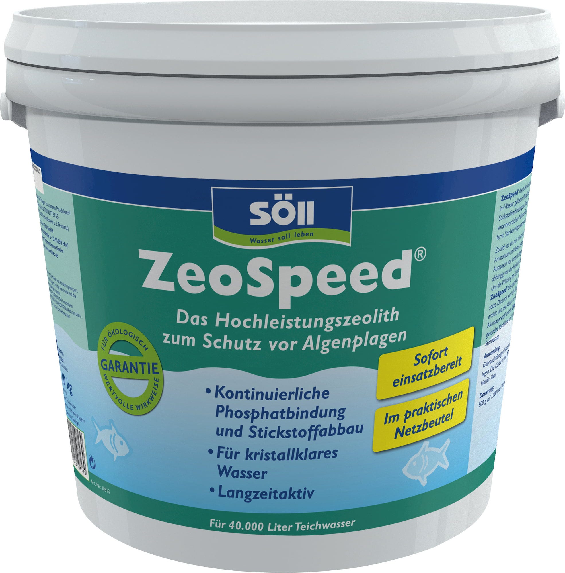 Fosforany są uważane za najważniejsze składniki odżywcze w algach. Jeśli zawartość fosforanów w wodzie stawu wzrasta, pod wpływem wystarczającej ilości słońca następuje wzmożony wzrost glonów. ZeoSpeed firmy Söll wiąże rozpuszczone w wodzie fosforany, skutecznie rozkłada związki azotu i tym samym pozbawia glony źródła do rozwoju.