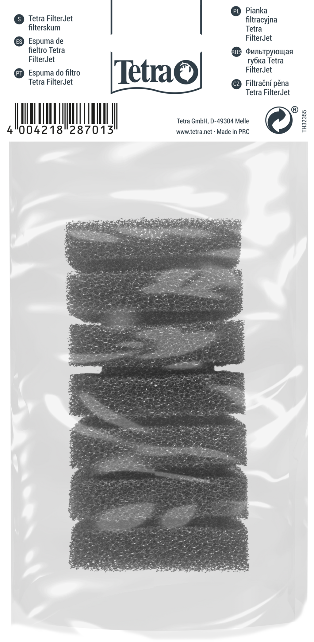 Gąbka filtracyjna Tetra jest przeznaczona do wewnętrznego filtra Tetra FilterJet. Gąbki są łatwe do wymiany i mogą być używane wielokrotnie. Gąbki filtracyjne charakteryzują się dużą kolonizacją bakterii filtracyjnych. Rozkładają one różne zanieczyszczenia i sprawiają, że woda w akwarium jest jeszcze bardziej przyjazna dla ryb. Gąbki filtracyjne Tetra są wykonane z nieszkodliwych materiałów.