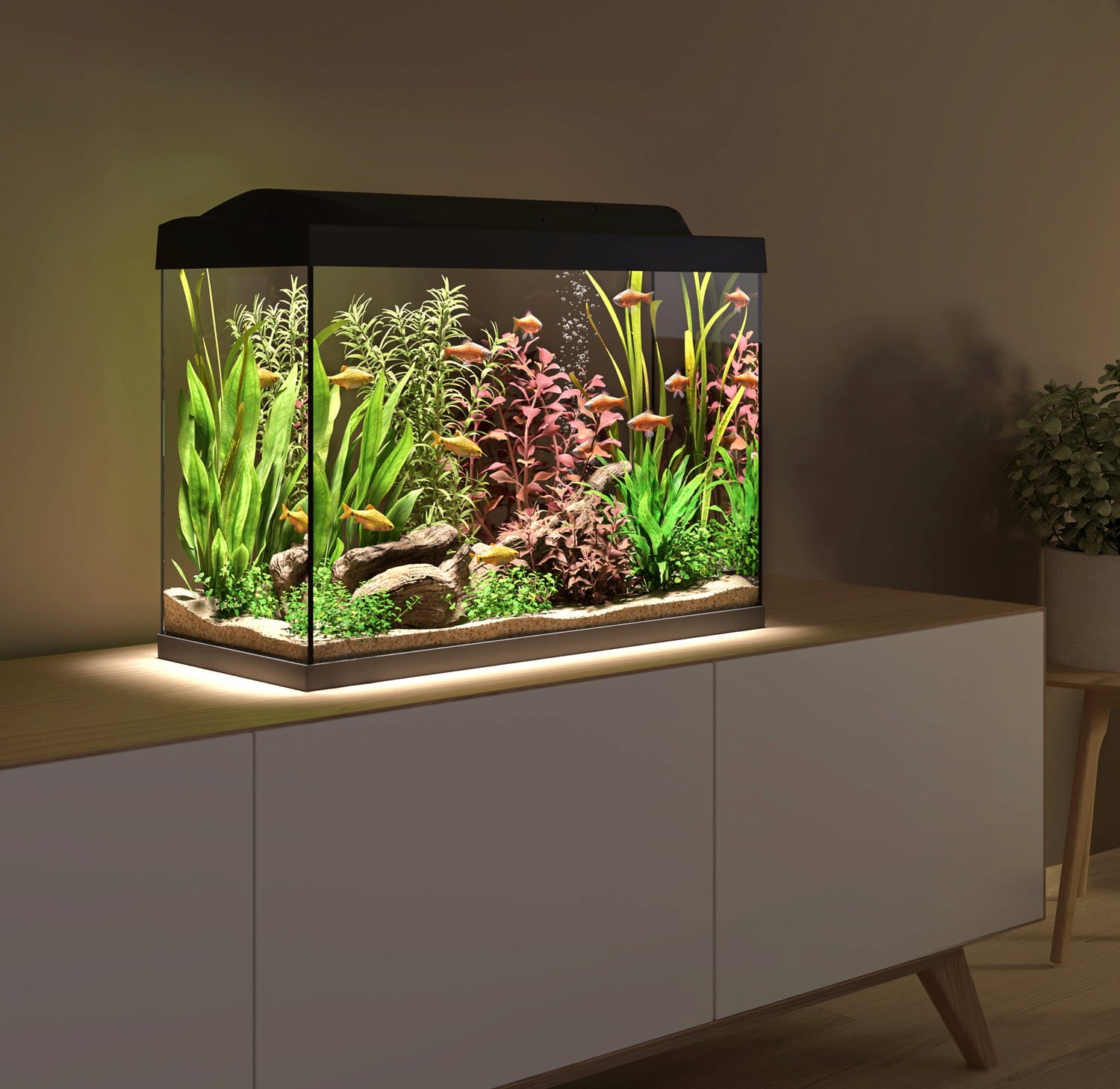 Ten zestaw zawiera wszystko, czego potrzebujesz, aby natychmiast rozpocząć nowe hobby. Sercem akwarium jest solidne akwarium ze szkła float, wyróżniające się wysokiej jakości konstrukcją i szybą o grubości 6 mm. Na górze znajduje się solidna pokrywa, która nie tylko wygląda stylowo, ale jest również niezwykle praktyczna: posiada otwór do karmienia, dzięki czemu codzienne karmienie przyszłych mieszkańców staje się dziecinnie proste.