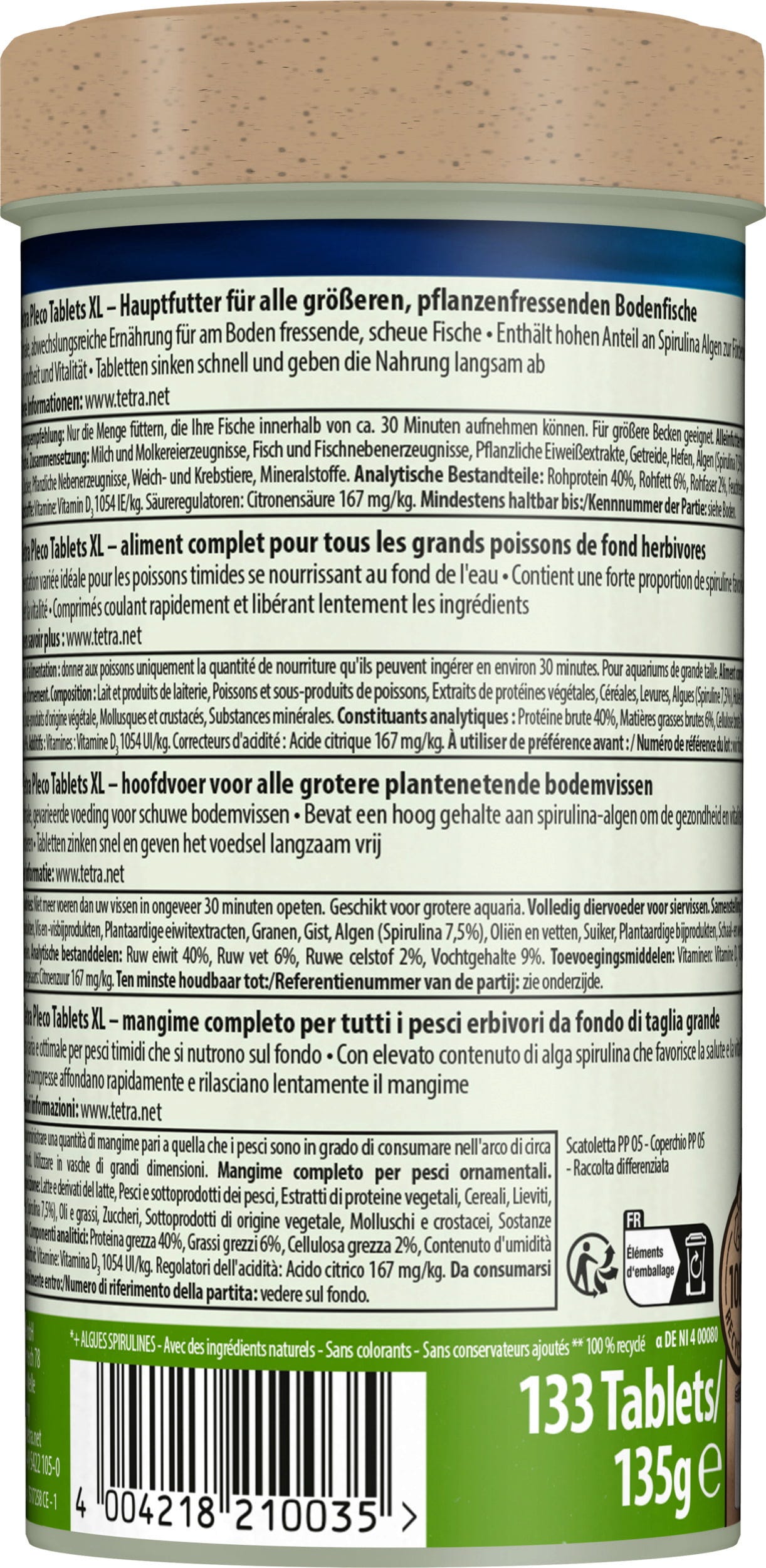 Tetra Pleco XL to podstawowy pokarm w formie tabletek dla wszystkich roślinożernych ryb dennych w akwariach słodkowodnych. Produkt dostępny jest w pojemnikach o różnej wielkości.