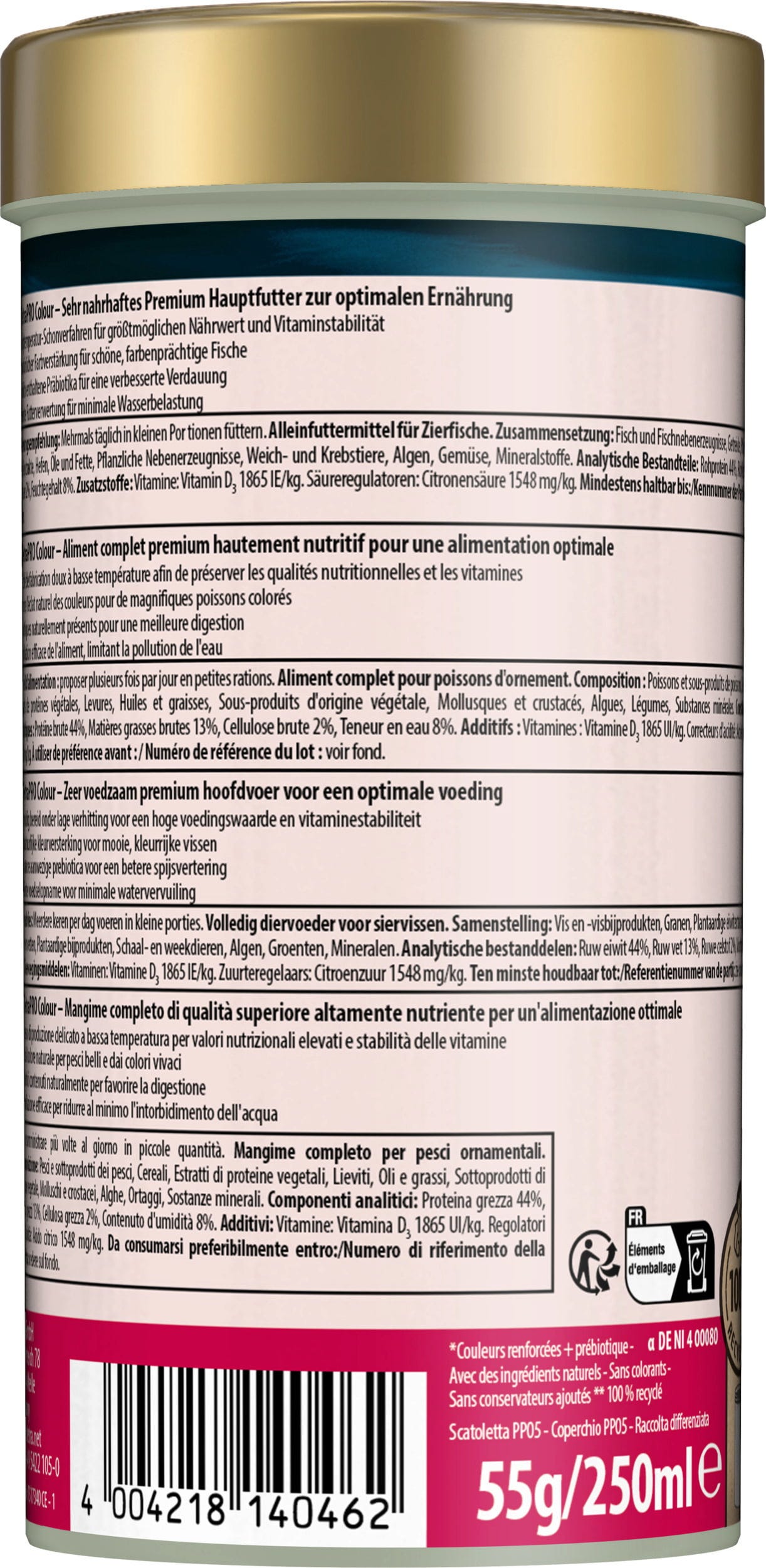 Pokarm TetraPro Color należy podawać 2-3 razy dziennie w małych porcjach, które ryby mogą w całości spożyć w ciągu kilku minut. Data przydatności do spożycia na opakowaniu pokazuje datę, do której pokarm zamknięty i odpowiednio przechowywany pozostaje niezepsuty. Aby wprowadzić urozmaicenie do odżywiania ryb, zaleca się podawanie 2-3 razy w tygodniu Tetra FreshDelica.