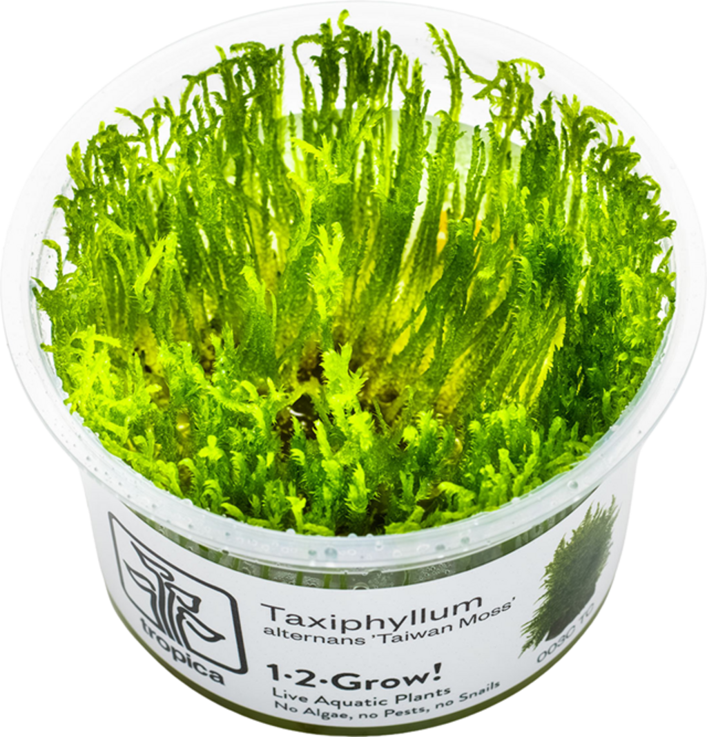 'Taiwan moss' Taxiphyllum jest bardzo łatwy w pielęgnacji i pochodzi z Azji. Mech dobrze radzi sobie w miękkiej i twardej wodzie, a nawet przy bardzo słabym oświetleniu. Mech tajwański łatwo rośnie na skałach i korzeniach i jest bardzo odpowiedni do tworzenia ścian z mchu lub do ukrycia technologii w akwarium.